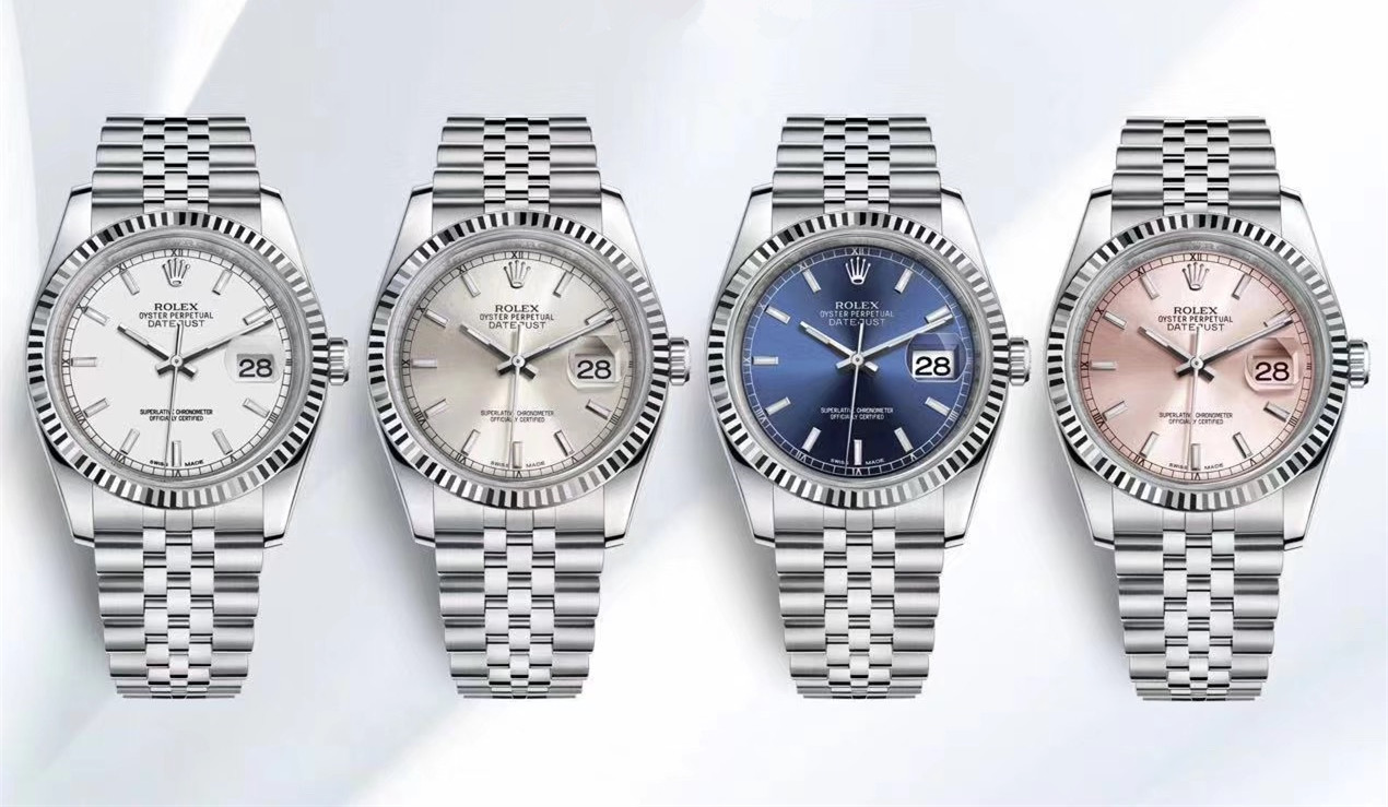 DATEJUST是劳力士日志型系列腕表、官方指导价格在6万元左右,钢壳款主要有白色面、金属灰面、蓝色面以及金色面四种,功能就是简单的大三针搭配日历显示功能,外观设计比较简洁大方。