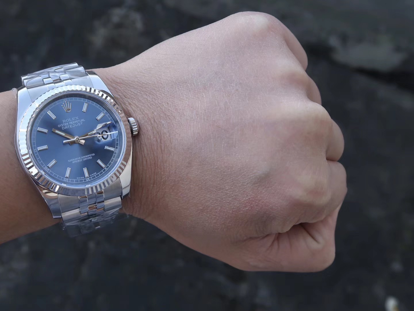DATEJUST日志腕表的36mm表盘直径适合于手腕腕围14cm-18mm的人群佩戴,这个尺寸按照比例来说可以认为所有女士和体重75kg以下的男士比较适合佩戴,如果体重偏大或者体格稍大的士可能就略为不适合了,当然本身就喜欢小尺寸腕表的表友也是无妨的,下面就给大家展示一下AR出品的劳力士DATEJUST日志腕表上手图、仅供表友进行参考。