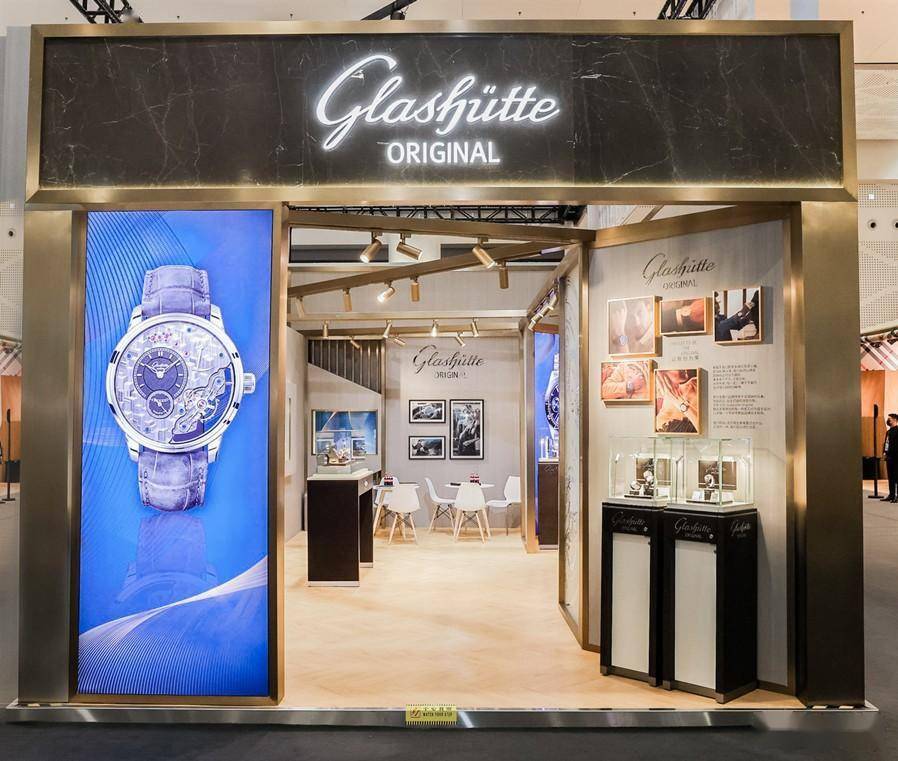 格拉苏蒂原创于5号时尚生活馆沃琪集团展区精彩亮相,富于细腻纹理的大理石与散发出温暖光泽的金属框架,两种经典材质的独特质感组成了格拉苏蒂原创展厅的外立面,带有机芯图案的半透明玻璃巧妙营造空间感,充分体现德系高级制表品牌对舒适典雅的美学追求。