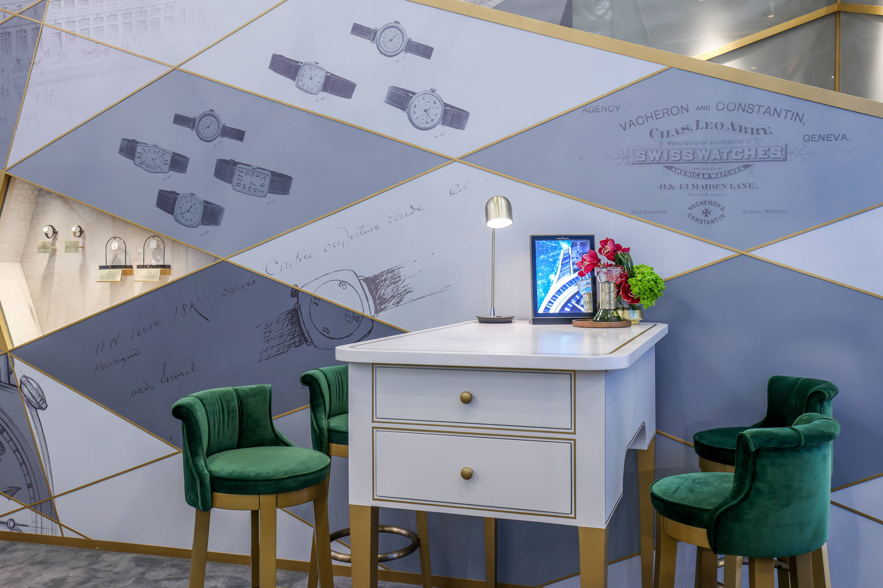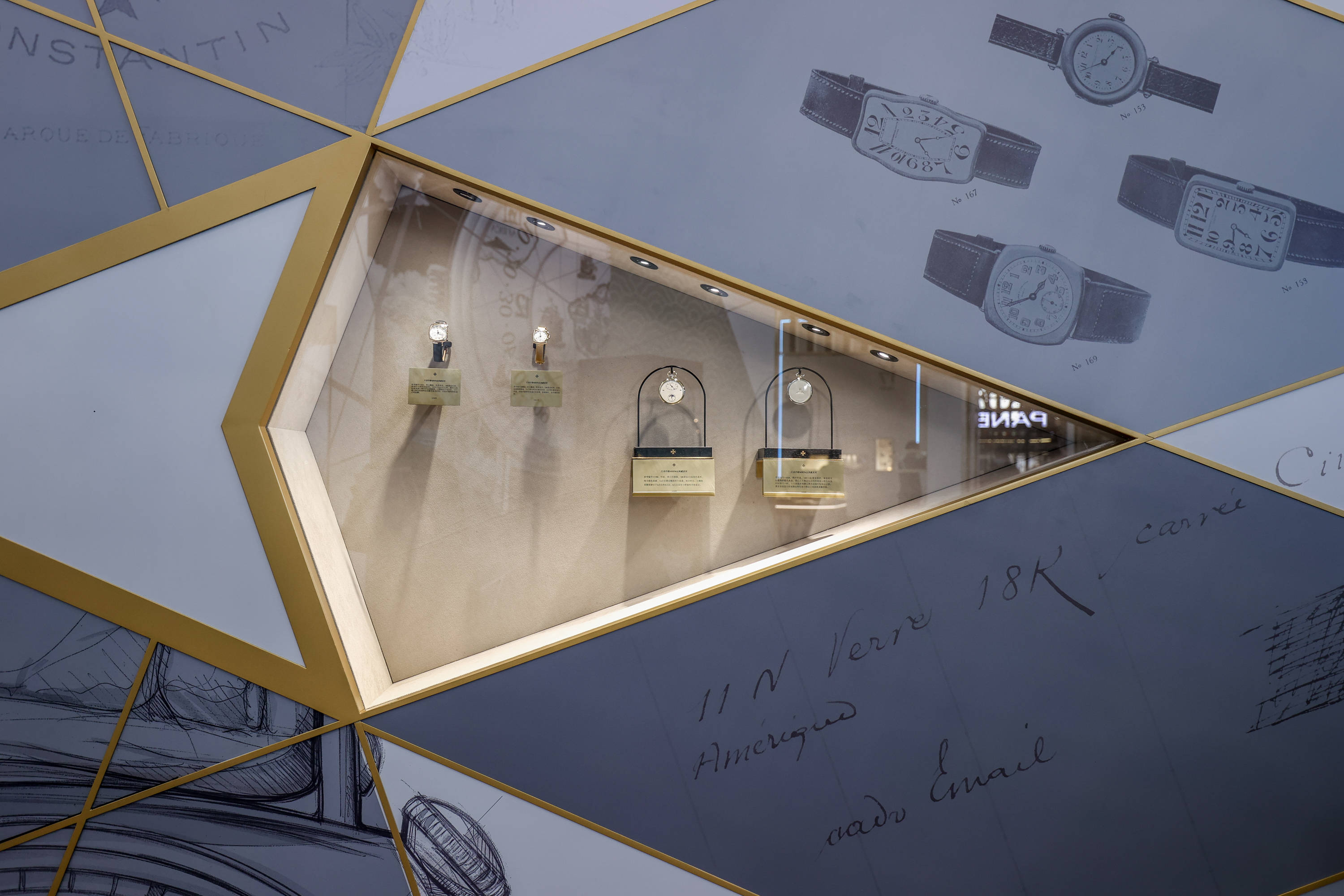 悉心呈现时计珍品之余,江诗丹顿展厅的外立面设计亦暗藏 “旋” 机。外侧及顶部设计中交织着看似不规则的金属线条,实则是以品牌标识马耳他十字为蓝本,将其各条轴线无限向外延展而成。极具现代风格的线条设计仿如是从强大的机芯内部延展至各个方位,散发无限张力,亦旨在向不为人知的品牌幕后工作者和精益求精的工匠精神致敬。