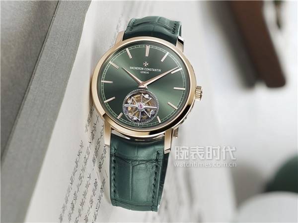 江诗丹顿于2018 SIHH推出的艺术大师系列巴黎1784热气球腕表 刨除个别不能算是纯粹“绿表”的艺术腕表作品,江诗丹顿是至今少有的没有做过“绿表”的腕表品牌。不过,这一说法在今天被打破——江诗丹顿于2021年11月29日发布了Tradtionnelle传袭系列陀飞轮中国限量款腕表。这款腕表采用绿色表盘搭配绿色表带,是一款纯粹的“绿表”。