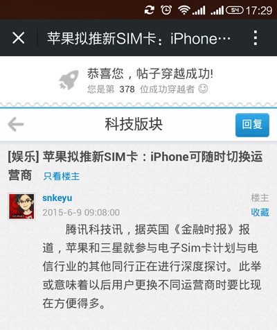 手机穿越看帖分享朋友圈就是这么简单